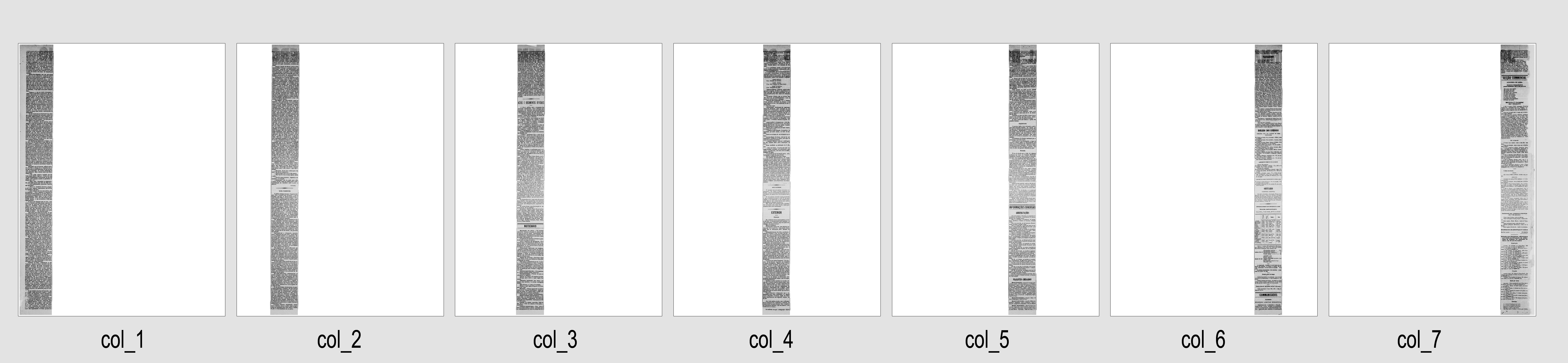 - As colunas são gravadas na pasta criada com o prefixo 'col_n', onde n corresponde ao número da coluna, e com o mesmo sufixo atribuido à pasta e à página redimensionada.
