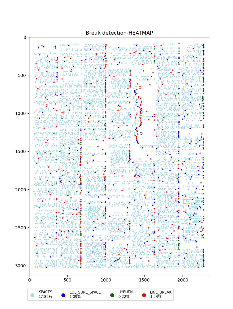 Heat-Map Quebras. Exibe uma distribuição das incidências das quebras de linhas e parágrafos. -