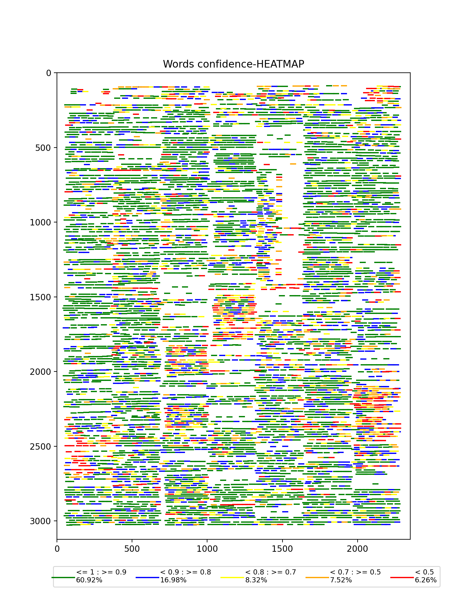 Heat-Map palavras. Exibe uma distribuição das incidências das palavras reconhecidas por número de confiança. -