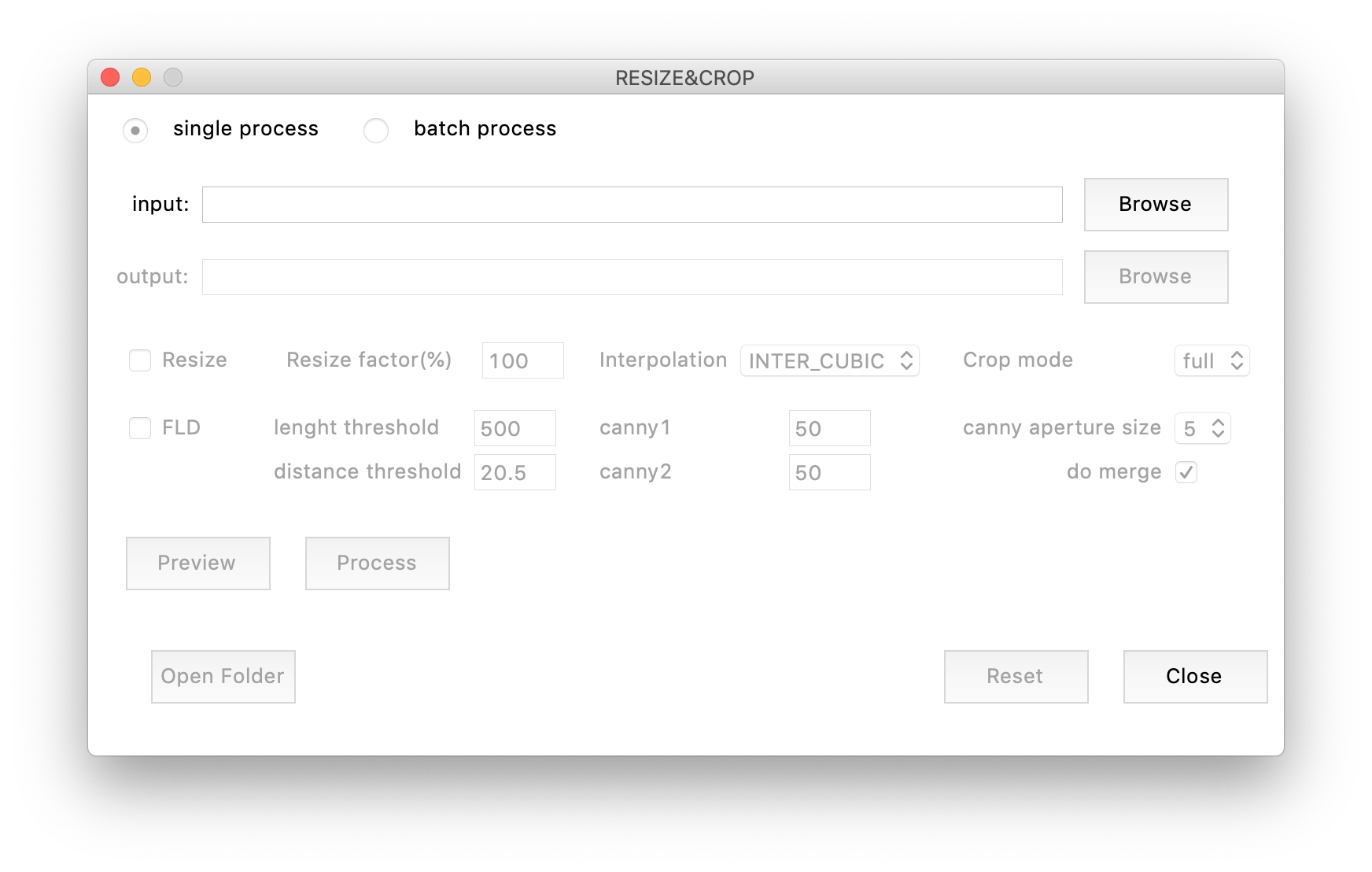 Interface gráfico (GUI) para experimentação de redimensionamento, segmentação e corte das colunas das páginas dos jornais.