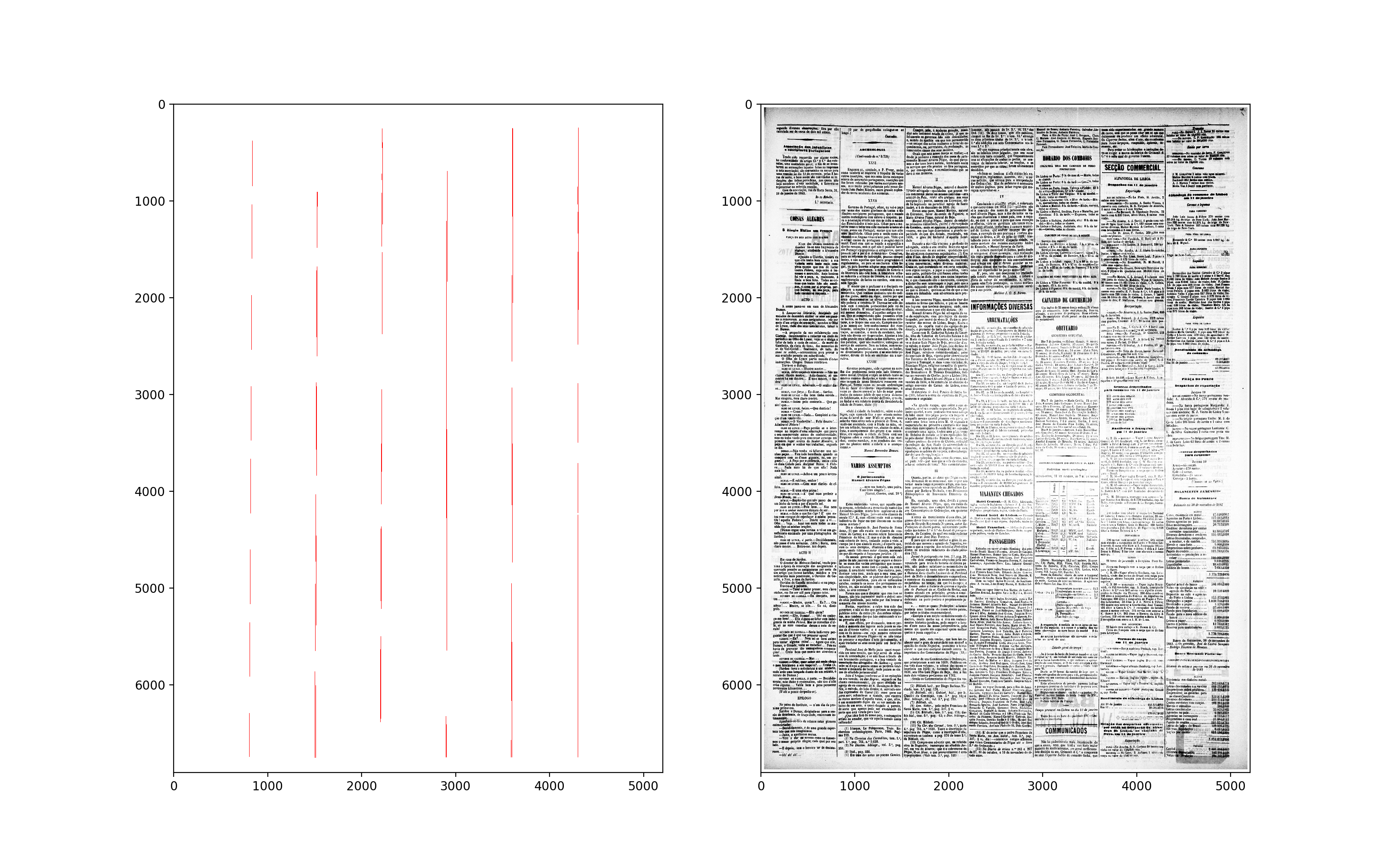 - Na página redimensionada são detectadas as linhas que fazem as divisões de colunas.